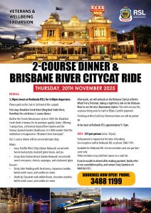 Cancellation Policy: If you’re unable to attend after making payment, please phone Greg Saunders on 0409 063 951. Cancellations will be reviewed on a case-by-case basis. Please note that short notice cancellations may not be eligible for a refund due to expenses incurred by Redlands RSL Sub Branch.